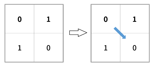 In the given 2×2 grid, we start at cell (0, 0) and want to reach cell (1, 1). Since both these cells contain 0 and diagonal movement is allowed, we can move directly from (0, 0) to (1, 1) in one diagonal step. As the path includes two cells, the length of the shortest path is 2.